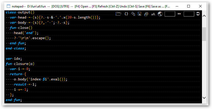 Fun 语言加亮器如下 (notepad--fun.syntax):