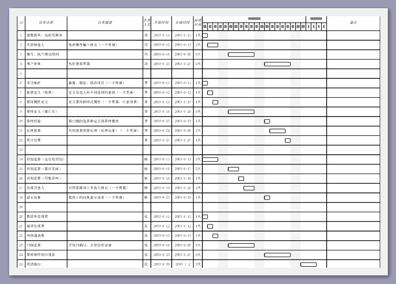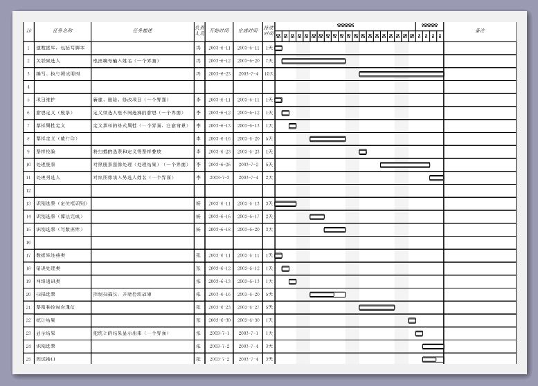 上面的那张甘特图是计划, 下面的甘特图是实际执行情况, 二者的结束日期完全一致, 功能全部完成.